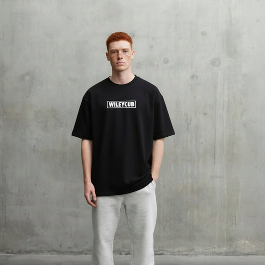 Oversized Wiley Cub Boxed Text T-Shirt in Black