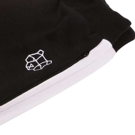 Fitted Fleece Lined Tracksuit Bottoms in Black with White Stripe