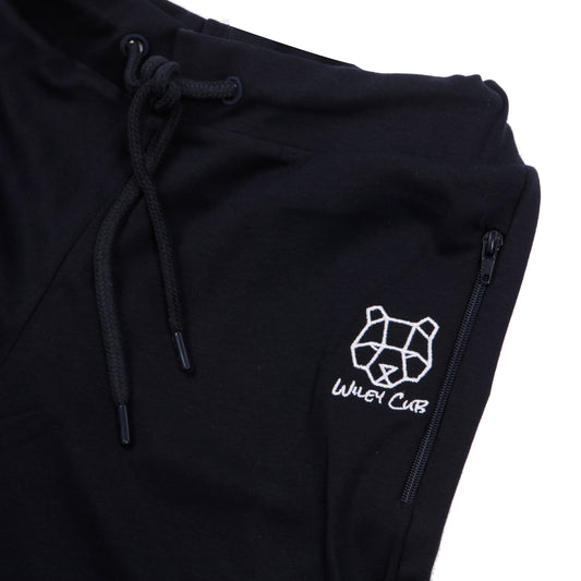 Fitted Fleece Lined Tracksuit Bottoms in Black