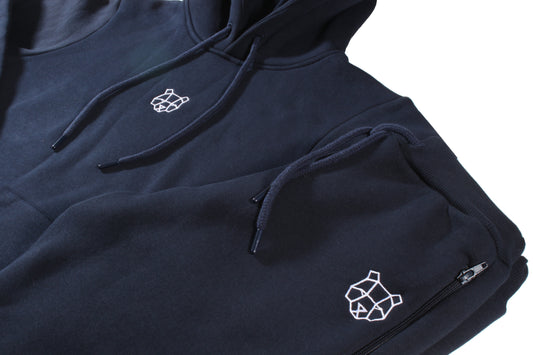 Fitted Fleece Lined Tracksuit Bottoms in Navy